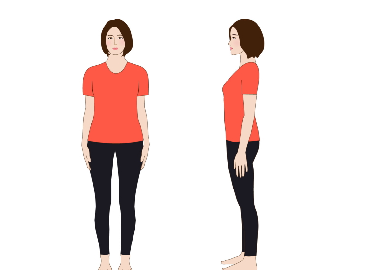 正面から見て左右が水平に揃っているか、横から見て耳・肩・股関節・足首が一直線か——