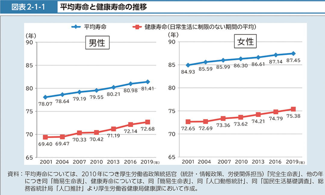 日本では平均寿命は世界でもトップクラスですが、健康寿命との間には差があります。