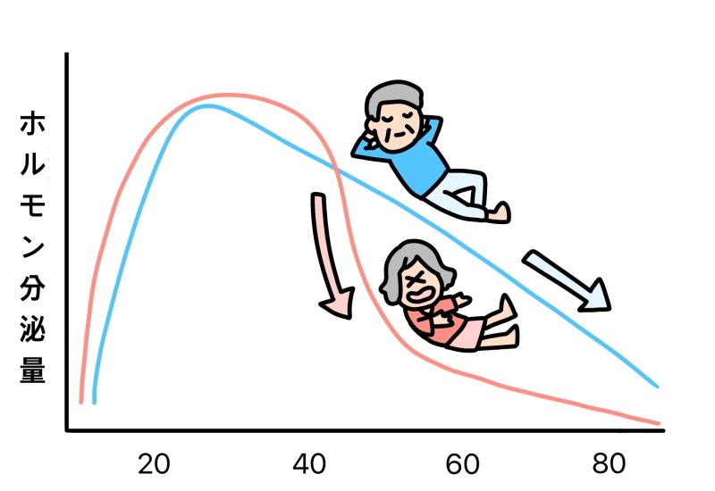 更年期の代表的な不調は、女性ホルモン、とくにエストロゲンが急激に減少して